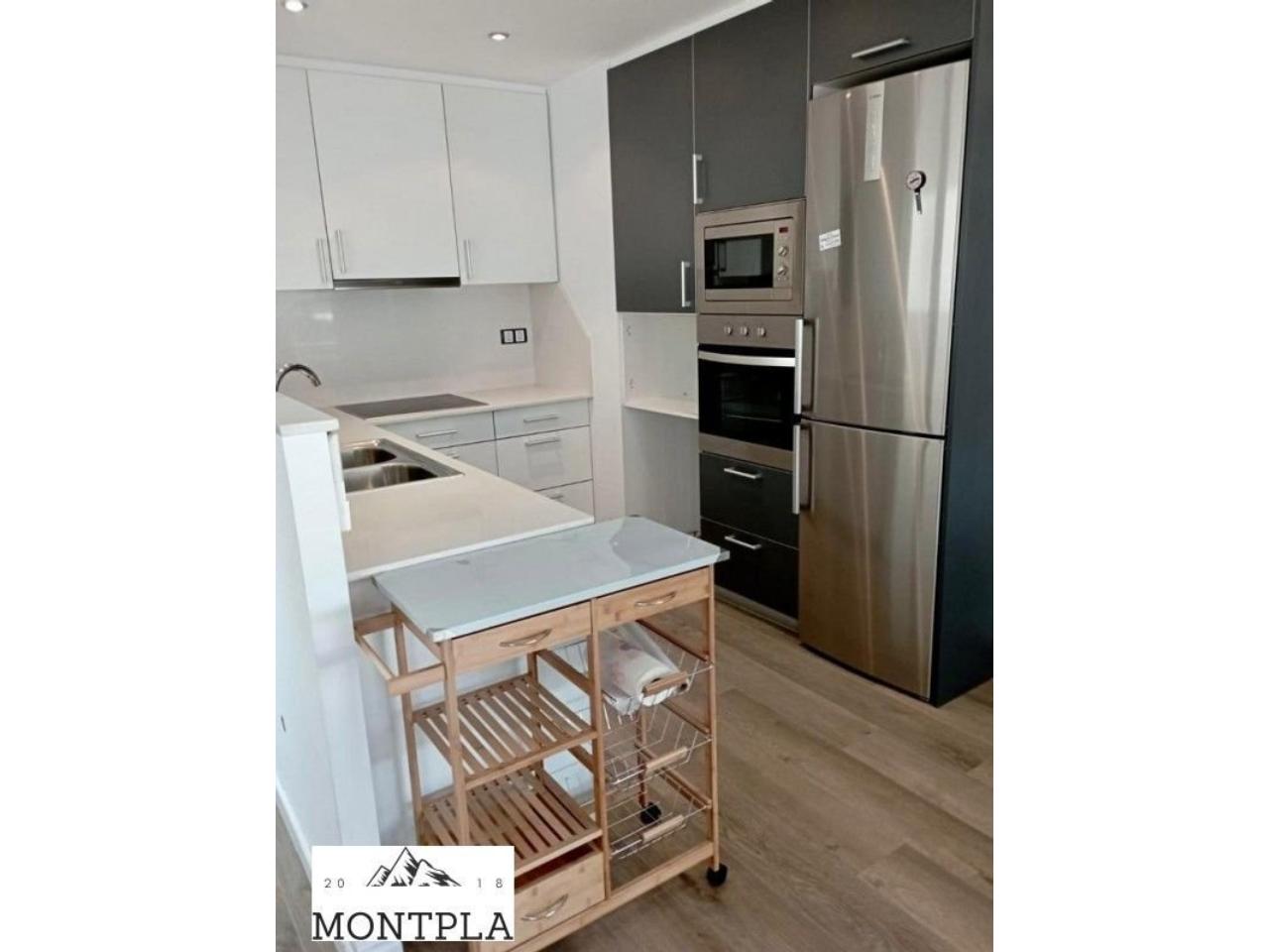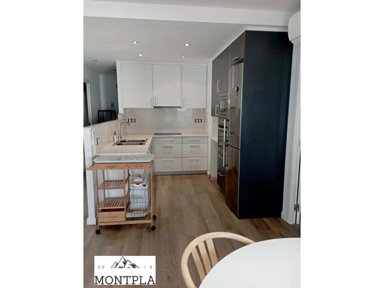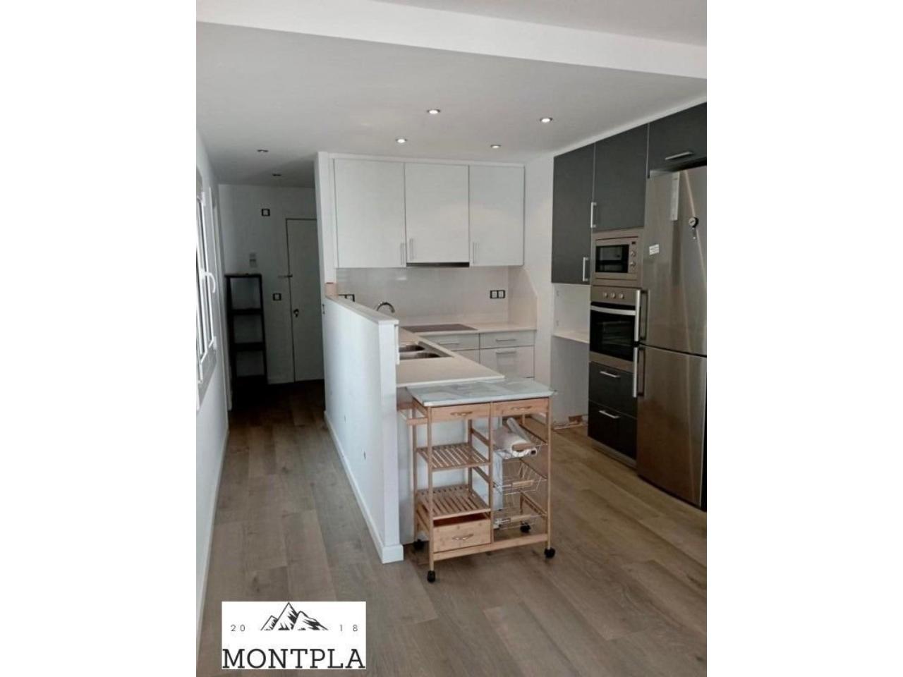 Cuina reformada oberta al saló, pràctica i funcional