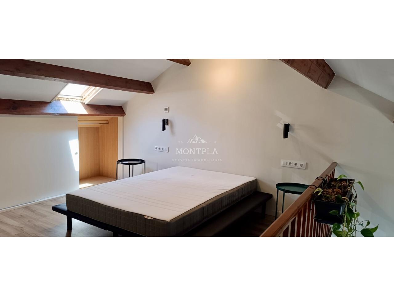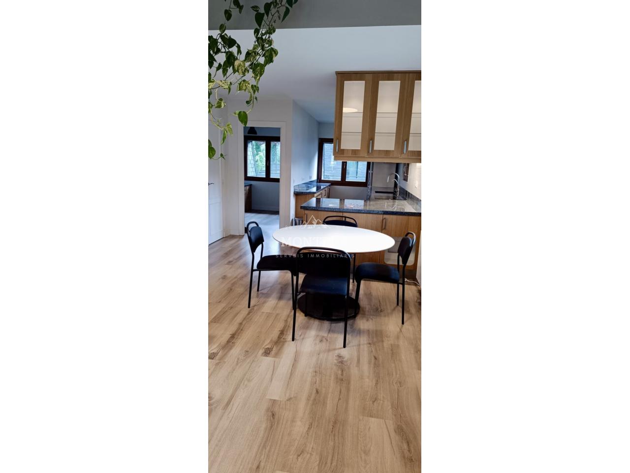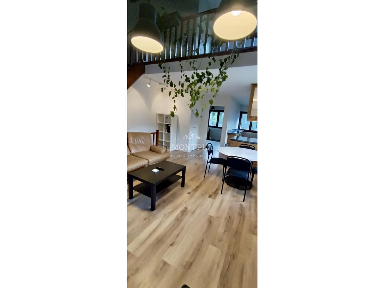 Primera planta: ampli saló menjador amb llar de foc i cuina oberta i una habitació