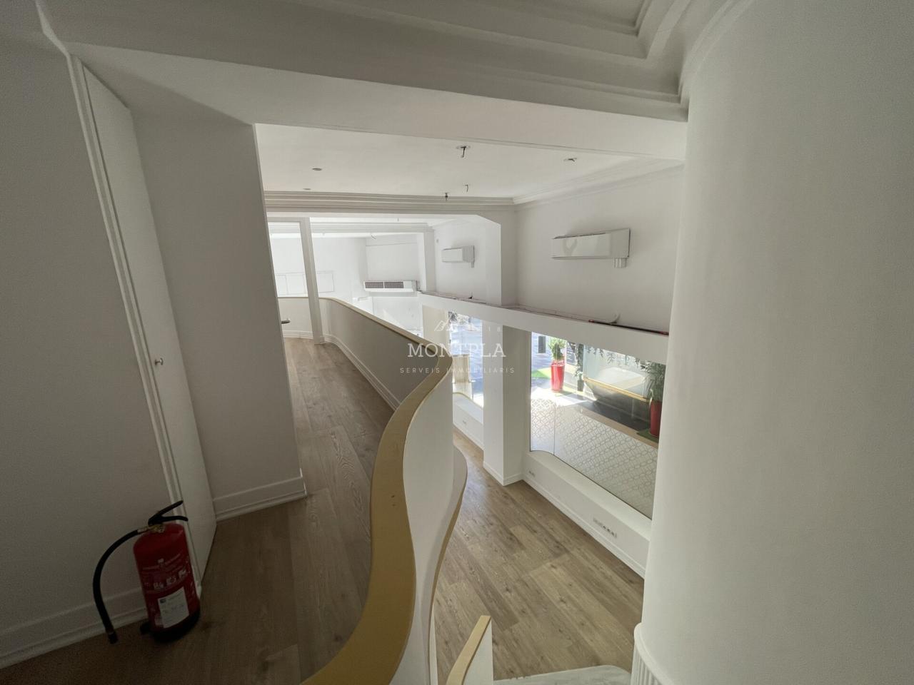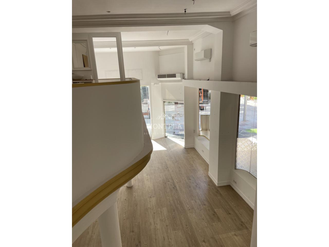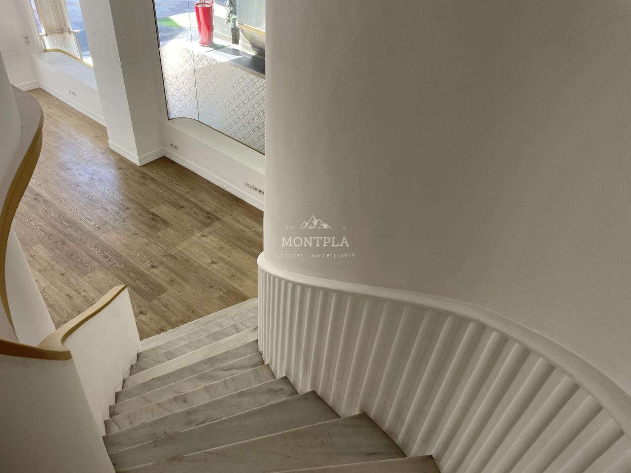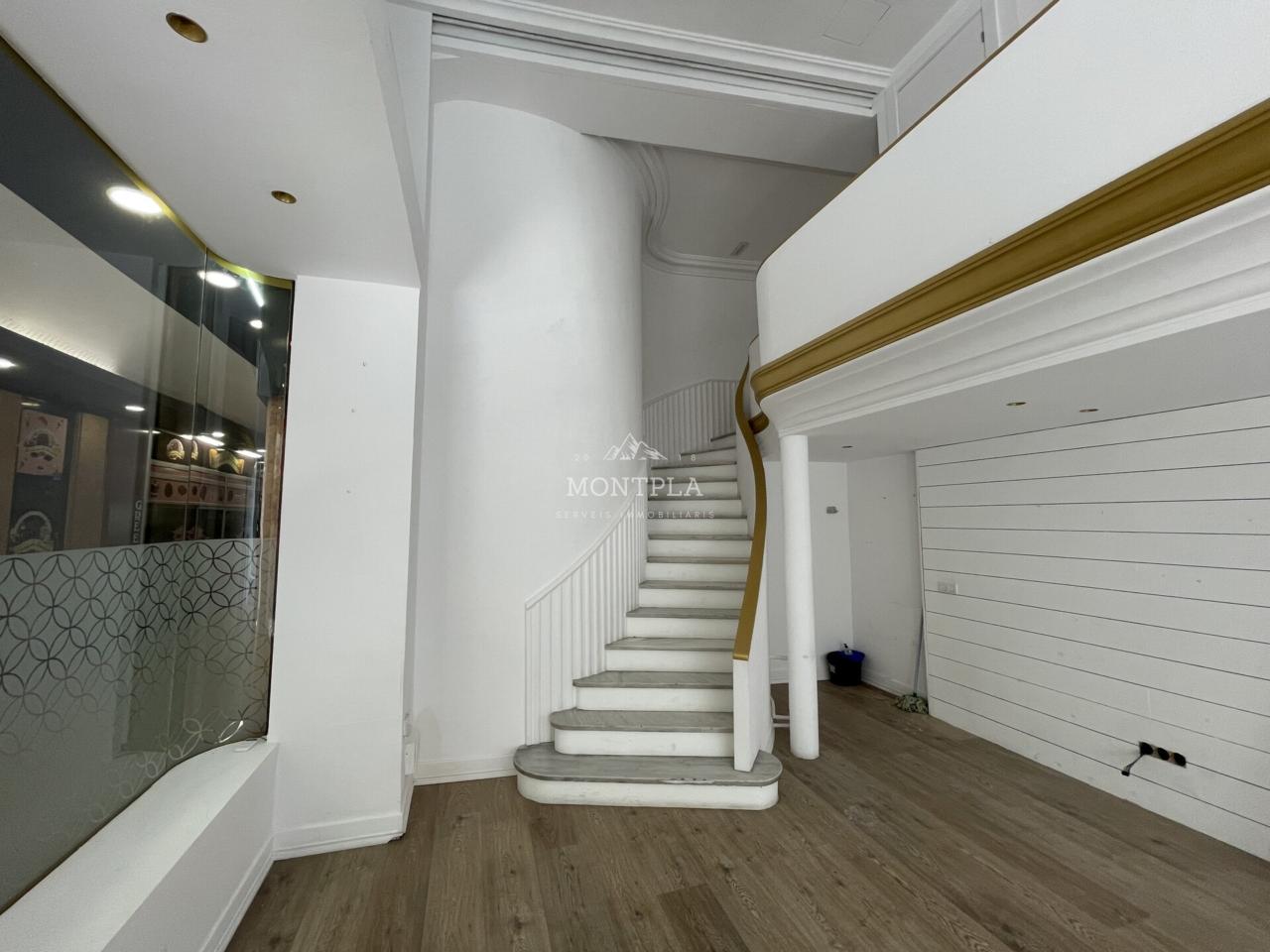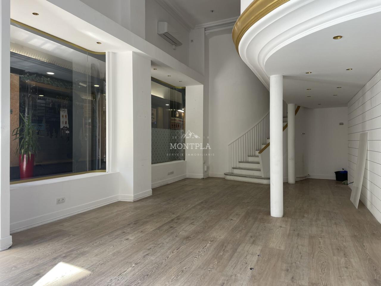 Planta baixa: 55 m² amb accés a planta superior mitjançant escales de cargol, espai diàfan i amb grans aparadors